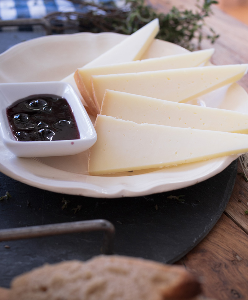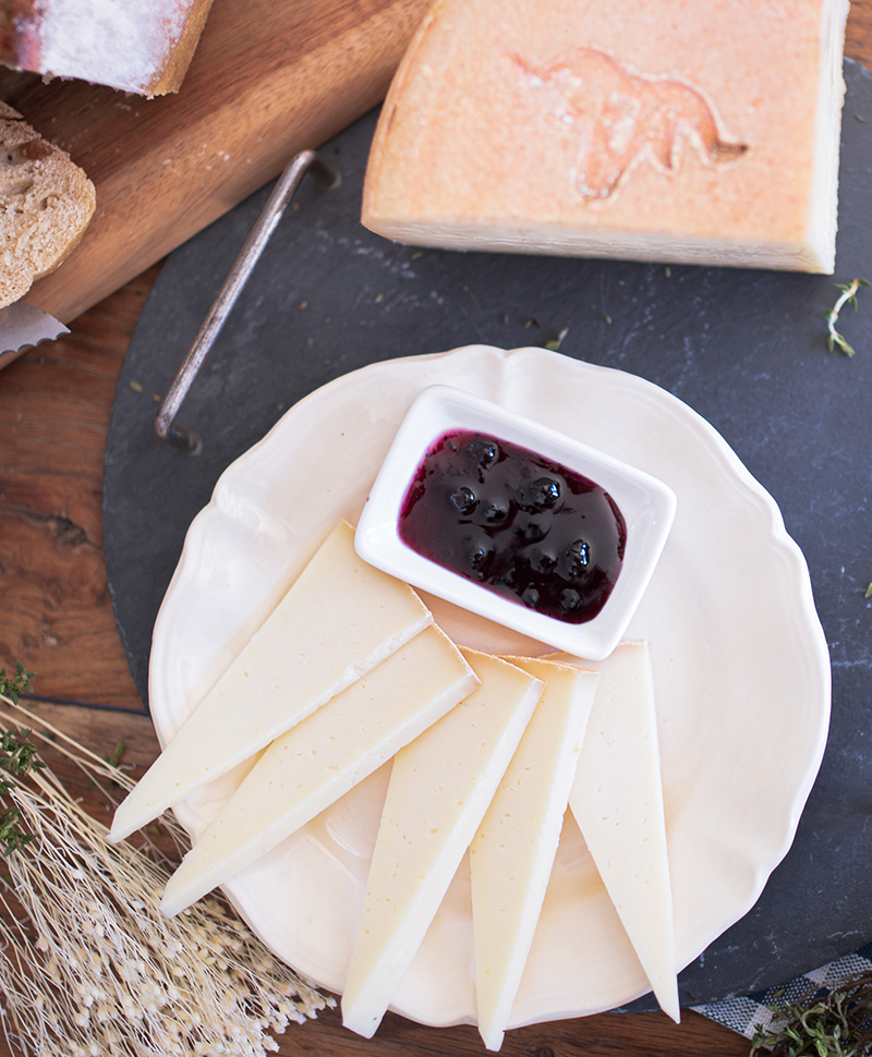 Un plateau gourmand composé exclusivement de fromage de brebis fermier AOP Ossau-Iraty, servi en deux triangles par personne.